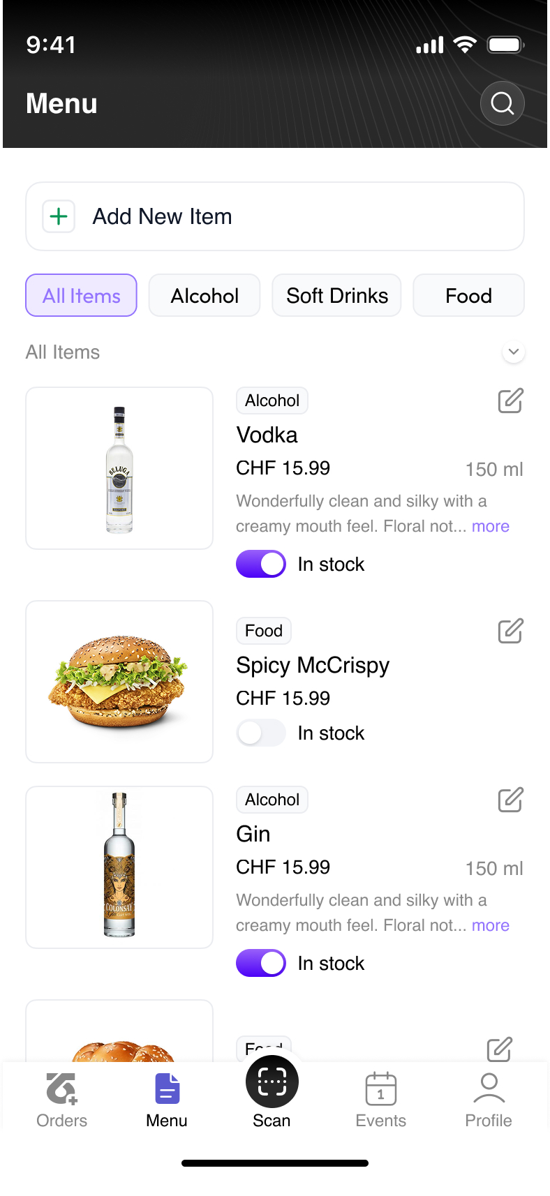 Your guests can only order while your account is open and accessible on countr app. In upcoming events you can plan your open hours down to the last detail.